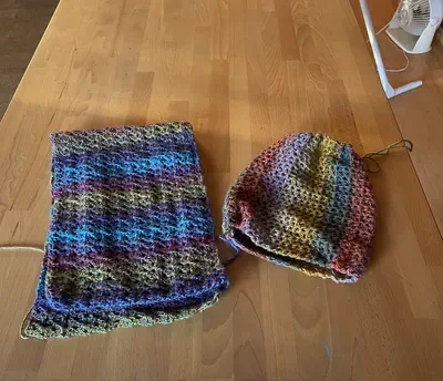 V-stitch infinity scarves and hats
