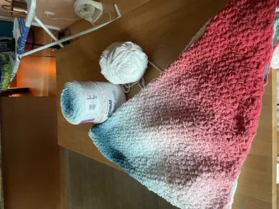 This blanket is for my son to take to his dorm room, which he moves into at the end of August. It’s a very quick pattern—corner-to-corner half-double crochet in Bernat Blanket ombre. When I’m done with the secret project, I should be able to complete this in a couple of days.