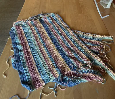 This was my first Tunisian crochet project. I misjudged the gauge terribly so even a year’s worth of rows is going to make an exceedingly short blanket and I might have to keep going for another year. This is the lowest priority of my personal projects.