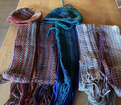 Linen Stitch scarves and hats