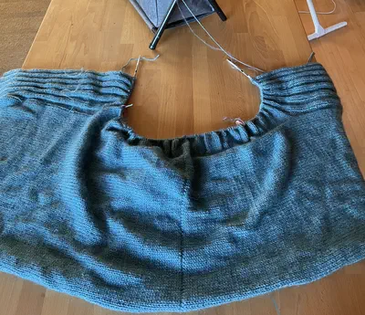 I don’t even remember when I started this. Early COVID times? I decided that my wrists could probably handle straight stocking stitch (I can’t really do cables or lace patterns with knitting anymore, because of my stupid fingers) but I didn’t anticipate how BORING that would be to make. Still, I really like the color, and the yarn. It’s from Rowan and it’s two different yarns stranded together, I forget which exactly, but between the two of them there’s a combination of mohair, silk and cashmere, I think. Which means I spent a lot of money on this yarn. It will be a really cool garment when it’s done. As far as projects for myself go, this one is my highest priority.