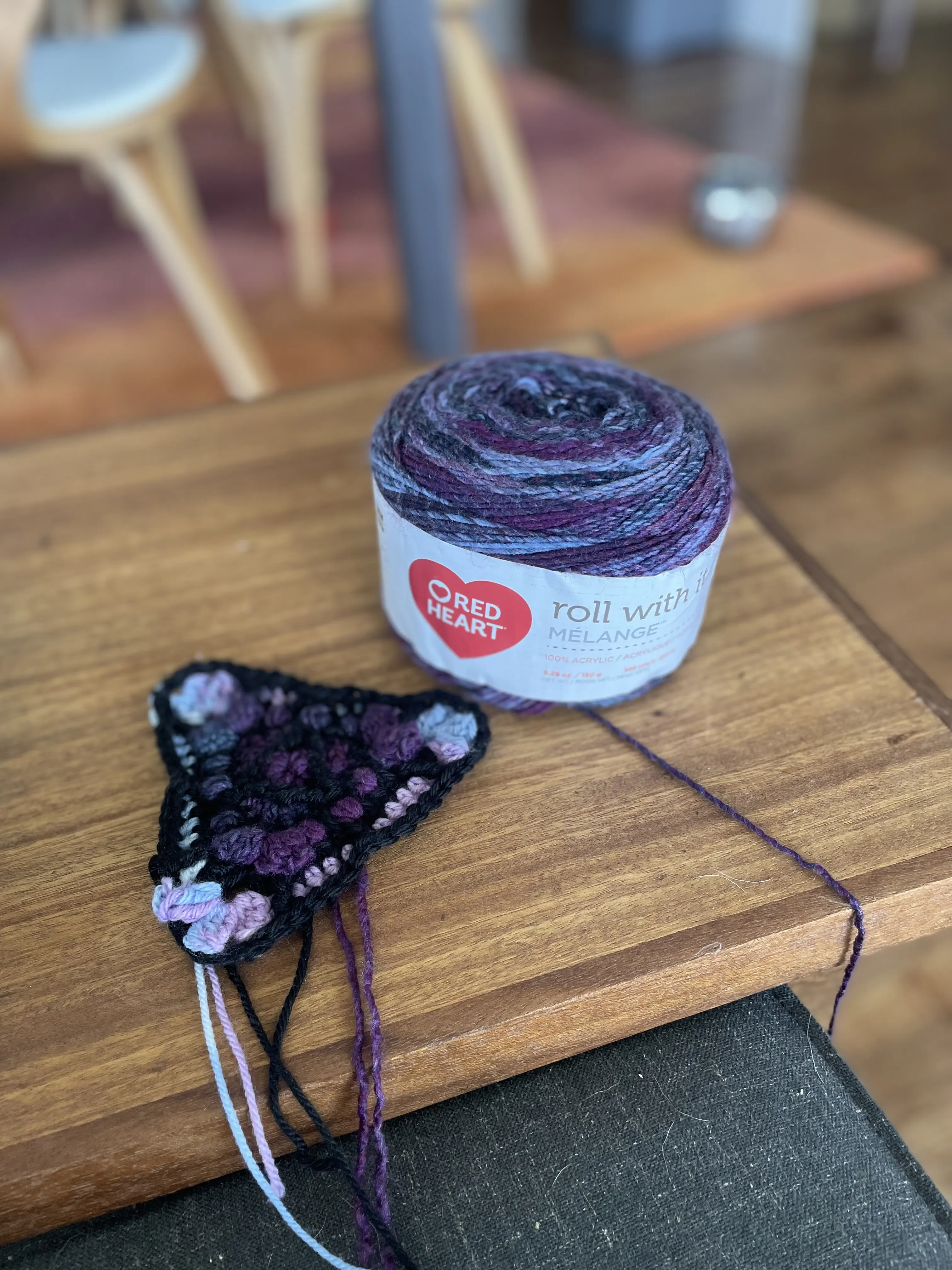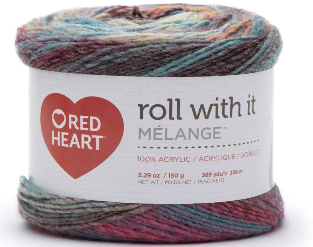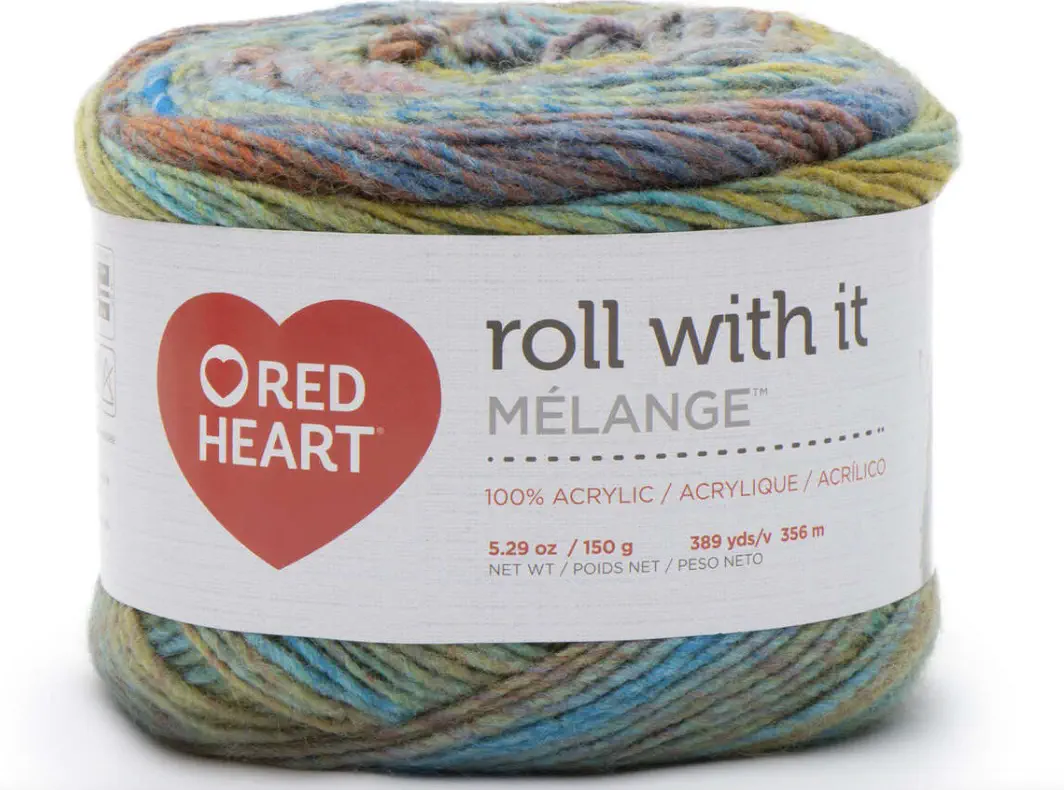 Some of the yarn suggested in the pattern doesn’t seem to be made anymore, but Red Heart “roll with it melange” is still around so I got the colors called for in the pattern, plus a bonus one that I liked the look of. That one, Show Time, has turned out to be my favorite.