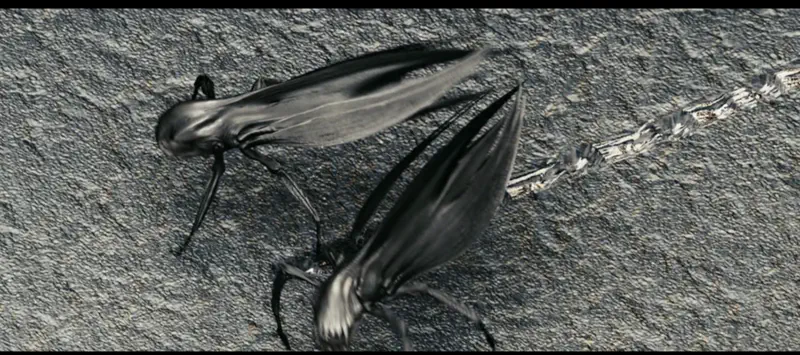 Jaden Smith passes out. Keatu explains that the Gort swarm is inside him, and he’s dying. Whoopsie. Keatu draws the insects out of him - here they look like ants.