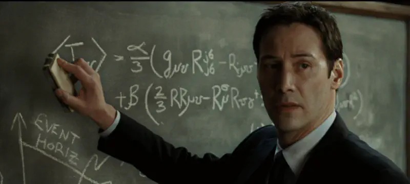 And who does Stepmom take Keatu to? MOTHERFUCKING JOHN CLEESE, THAT’S WHO. John Cleese won a Nobel prize for his work in biological altruism. I didn’t know that was a Nobel category. In a callback to the original movie, Keatu corrects Professor John Cleese’s math on the chalkboard. Professor Cleese walks in (in his bathrobe) to find Keatu writing on his board, and joins him. They communicate in math for a little while.