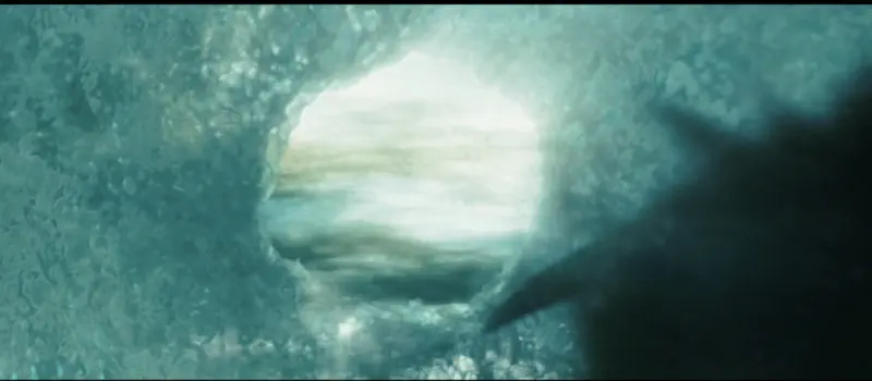 He breaks it open and it’s full of swirling colors that look like the surface of Jupiter or something. Keanu passes out. He wakes up with some kind of weird round scar on his hand, and the ice ball is gone.