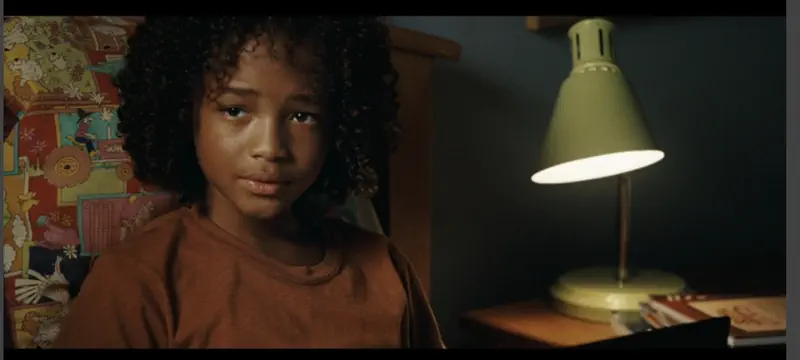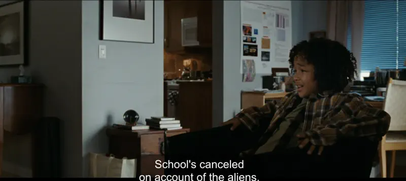 He tells Professor Mom to “stop being such a stepmom,” so everyone who was wondering why Jennifer Connolly has a Black kid, you can relax. His dad seems to be dead and Professor Stepmom’s relationship with the kid doesn’t seem to be the best. We’ll find out later that his dad was an army engineer and died a year ago, leaving his stepmom “stuck” with him (Jaden’s words, not stepmom’s).