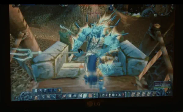 Oh my gosh and he’s so little. This is years before Karate Kid I guess. He’s a little too young to be playing WoW honestly. He looks about eight. He’s probably one of those little shits I used to run into in battlegrounds. He’s a human paladin and he’s fighting naga in Stranglethorn Vale. He’s not using any add-ons and his spell bar is a mess. I think the spells are literally in the order you unlock them.