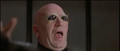 Now he’s a fetus and ready to be re-programmed. No higher than level three, Klytus (the chief henchperson) says; a human can’t take any more than that. But Klytus should have stuck around because the woman running the machine sets it to level six after he leaves! Turns out this won’t matter even a little bit.