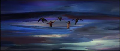 The hawkmen carry Dale and Zarkov through the sky for some reason.