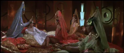 Turns out that a secret pleasure moon is small potatoes, though, because there’s an entire pleasure galaxy! That’s where the elixir that Dale’s served in the harem comes from. It will make her night with Ming “more agreeable.”