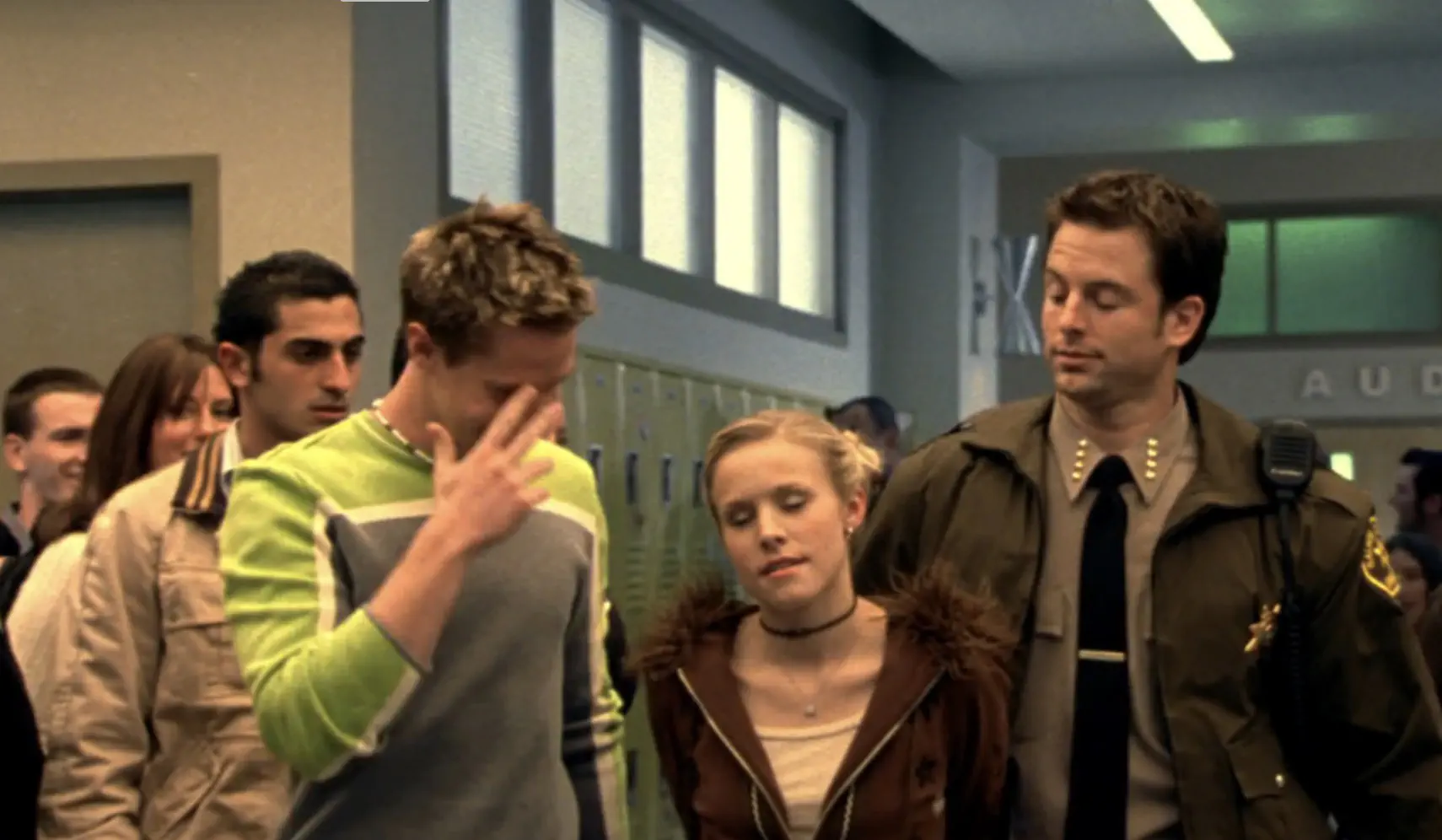 Someone has framed Veronica for manufacturing and distributing fake IDs. She’s perp-walked out in cuffs past a smirking (and saluting) Logan, in a fun callback to the pilot.