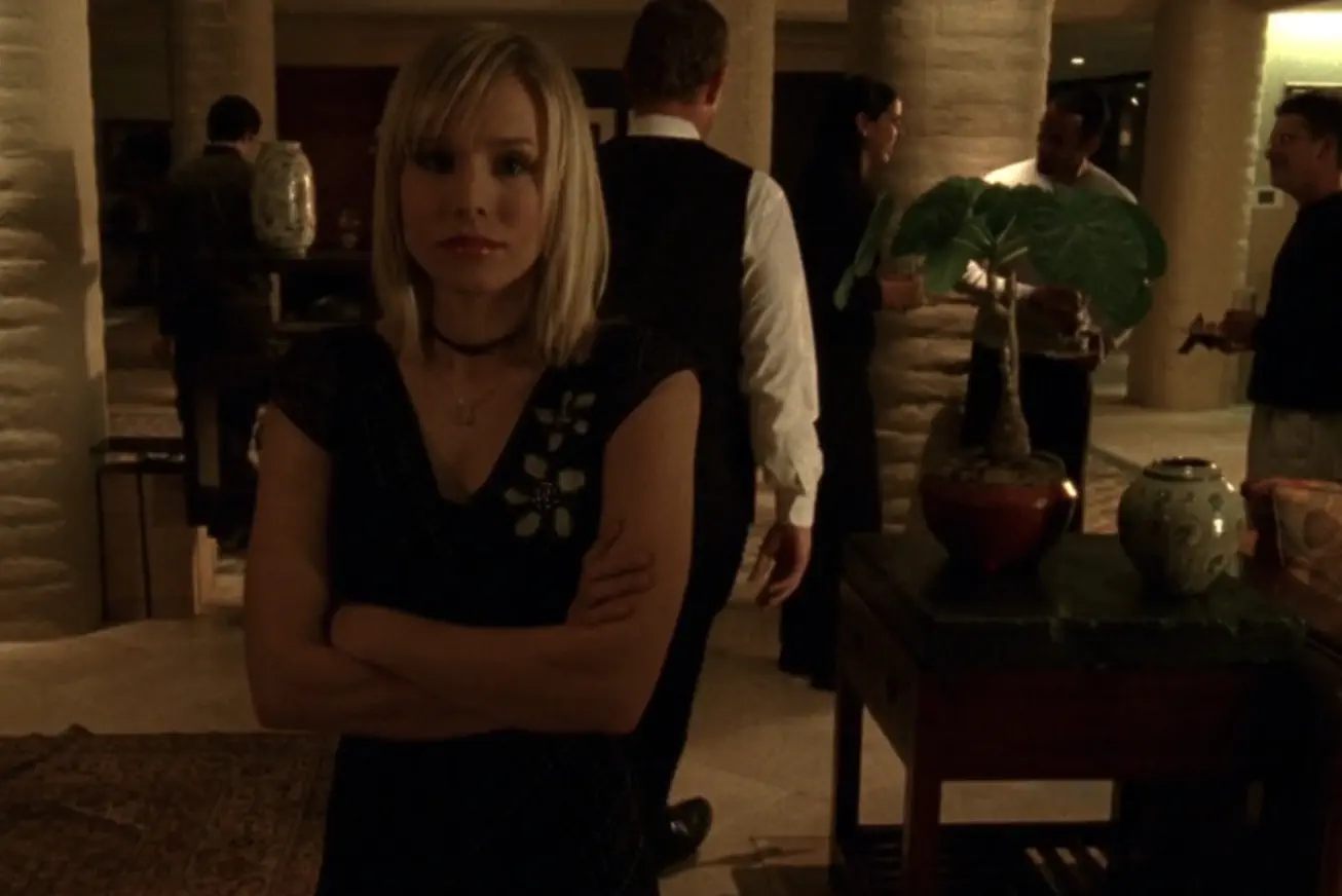 Veronica tracks down Amelia DuLongpre, minutes before Wiedman arrives, and whisks her off to a motel (where, at one point, Clash of the Titans is playing on TV—a real-life movie staring real-life Harry Hamlin, but in this universe starring Aaron Echolls). Amelia hasn’t spoken to her father in years and thinks the millions in Kane stock she was given was an out-of-court settlement for Koontz’s lawsuit over streaming video. Veronica thinks it was a payoff for Koontz taking the fall for Lilly’s murder. To find out for sure, she’s going to hide Amelia until the settlement documents, sent by Amelia’s mother, arrive. (Side note—I don’t know how Amelia got into Loyola Marymount because she’s really as dumb as rocks. She doesn’t understand anything Veronica says to her.)