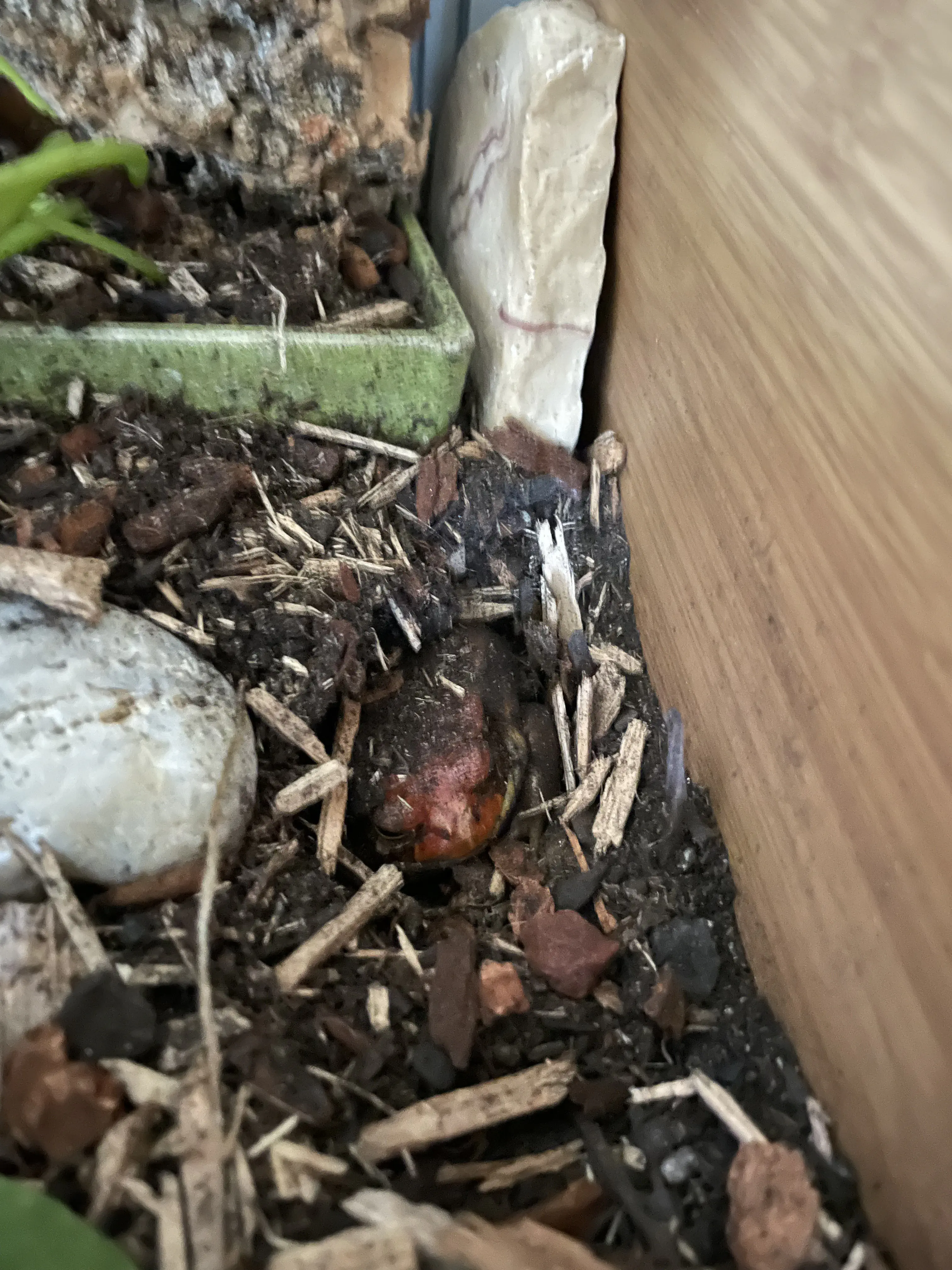 These guys haven’t moved in days. The ride up from California was pretty exhausting for them, even though all they had to do was sit in a tank. I don’t think they got any sleep, though, because the vibration and road noise was probably pretty alarming. Their first day in their new habitat, they explored every corner, and even looked like they were plotting an escape: