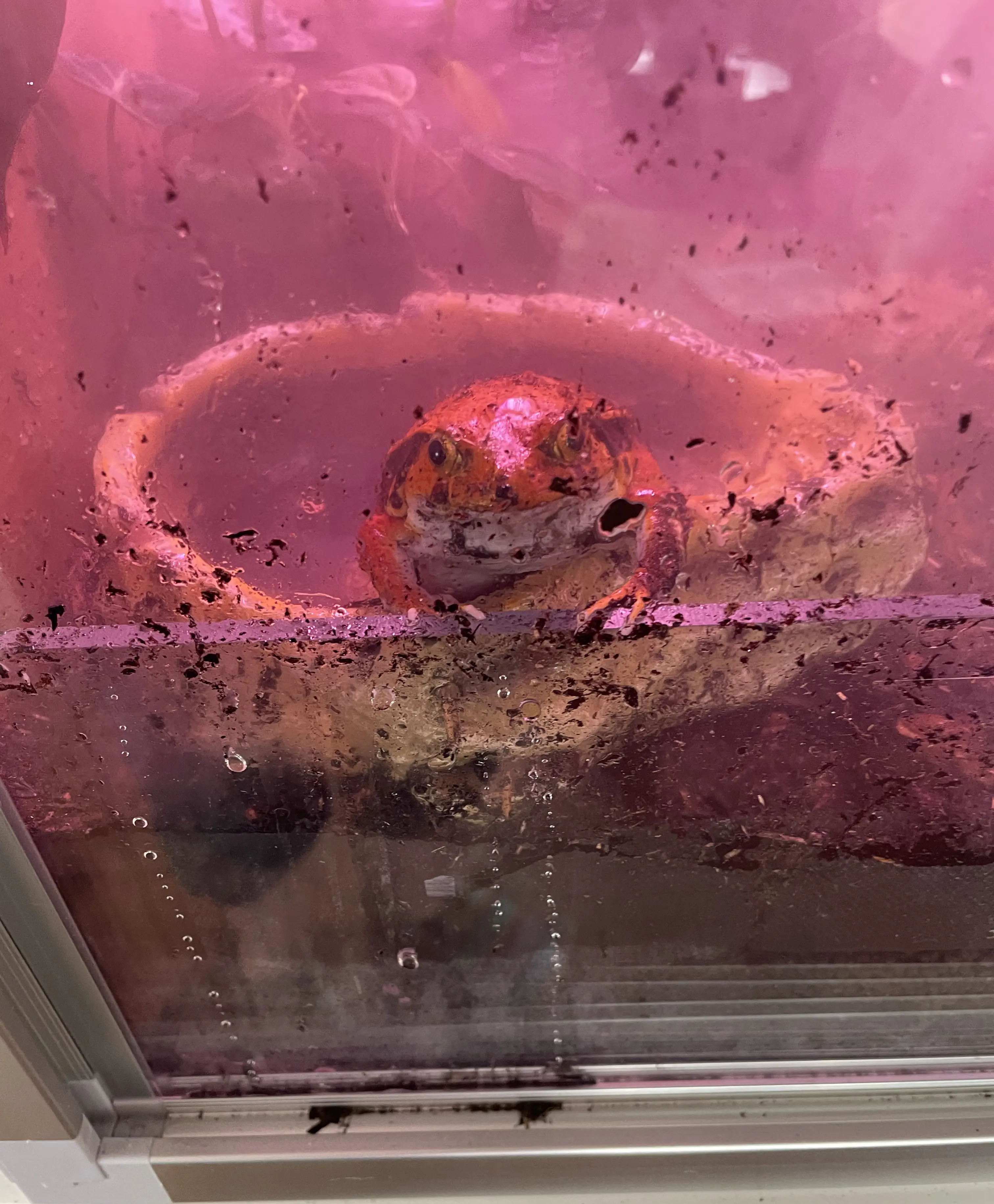 I’m holding out hope for the rainy weather that’s on the way, and in the meantime trying to take a page from my frogs’ books: